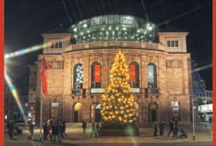 Das Mainzer Staatstheater am Gutenbergplatz in der Weihnachtszeit