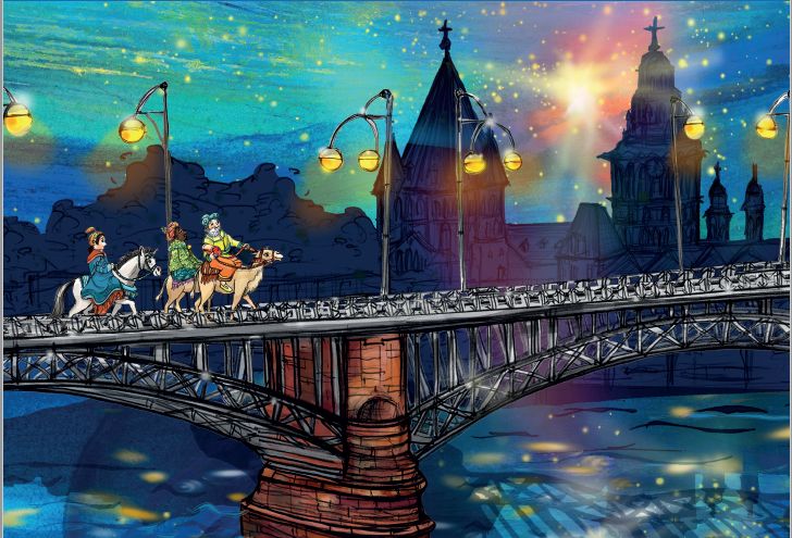 Die heiligen drei Könige folgen dem Stern in Mainz über den Rhein