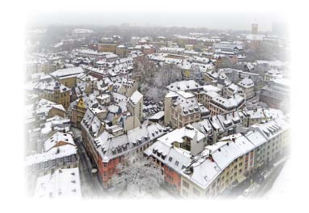 Die Mainzer Altstadt an einem Wintermorgen vom Dom aus gesehen