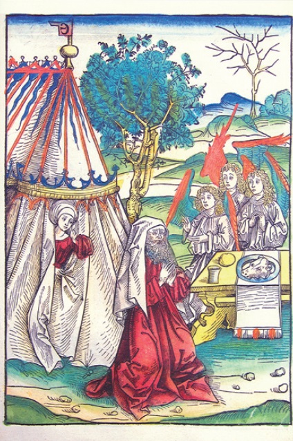 Gott besucht Abraham und Sara in Gestalt von drei Engeln, die die Geburt Isaaks ankündigen (Gen 18,1-33)
