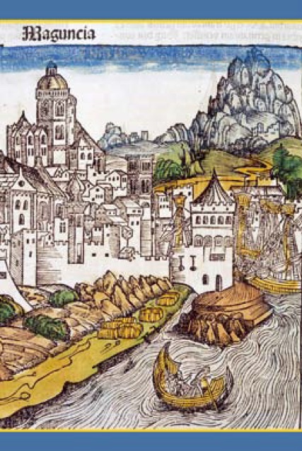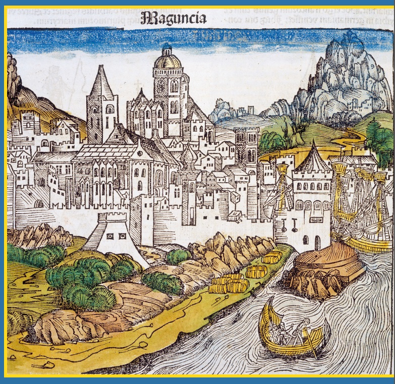 Fantasievolle Darstellung der Stadt Mainz in der Weltchronik von Hartmann Schedel