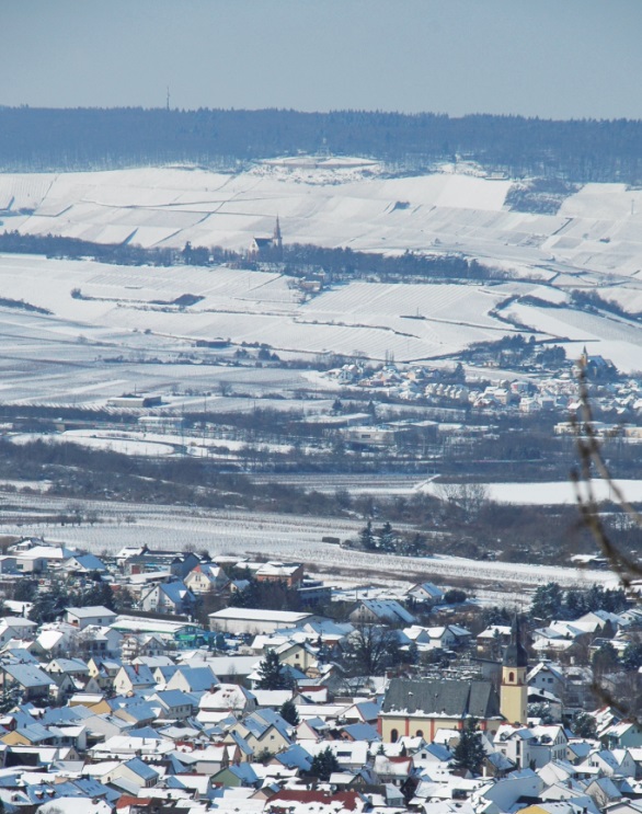 Blick vom Jakobsberg über Ockenheim zum Rochusberg und zum Niederwalddenkmal